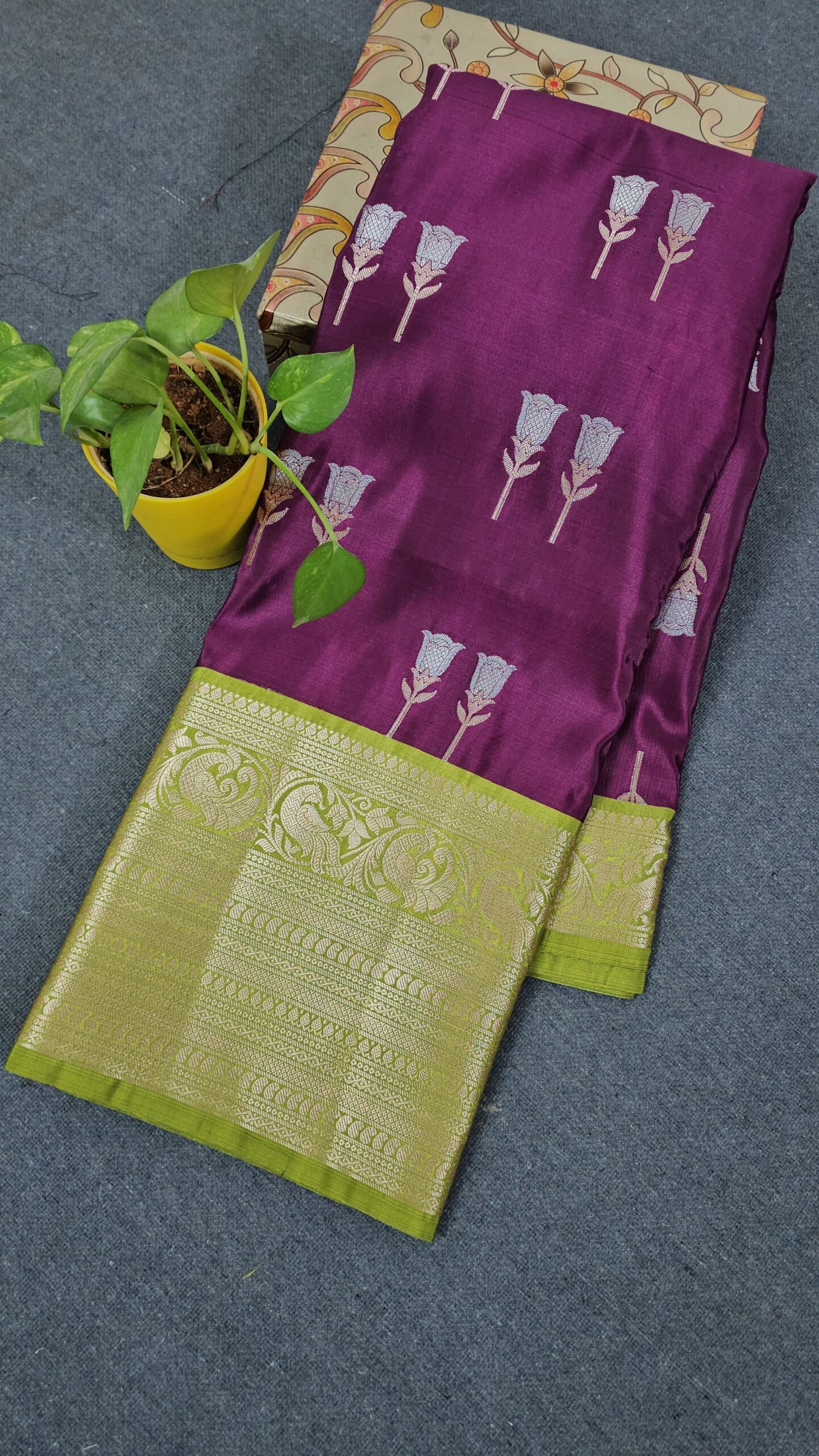 Banarasi Chinya Pattu Saree – Purple & Green | Hyderabad B220