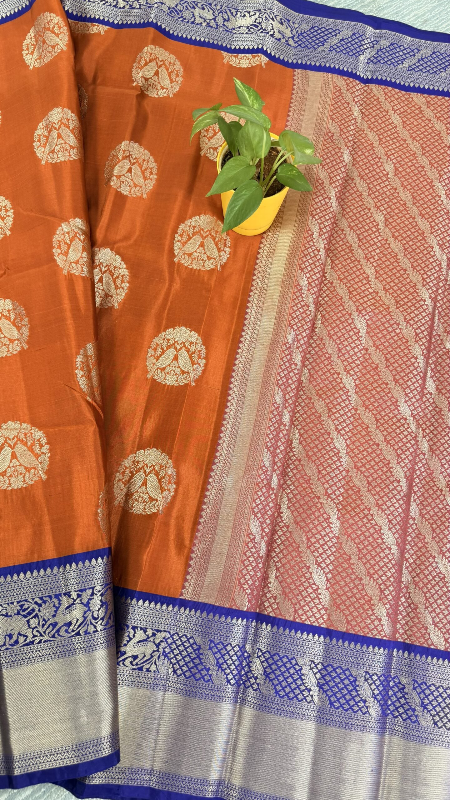• Color: Orange body with purple kanchi border