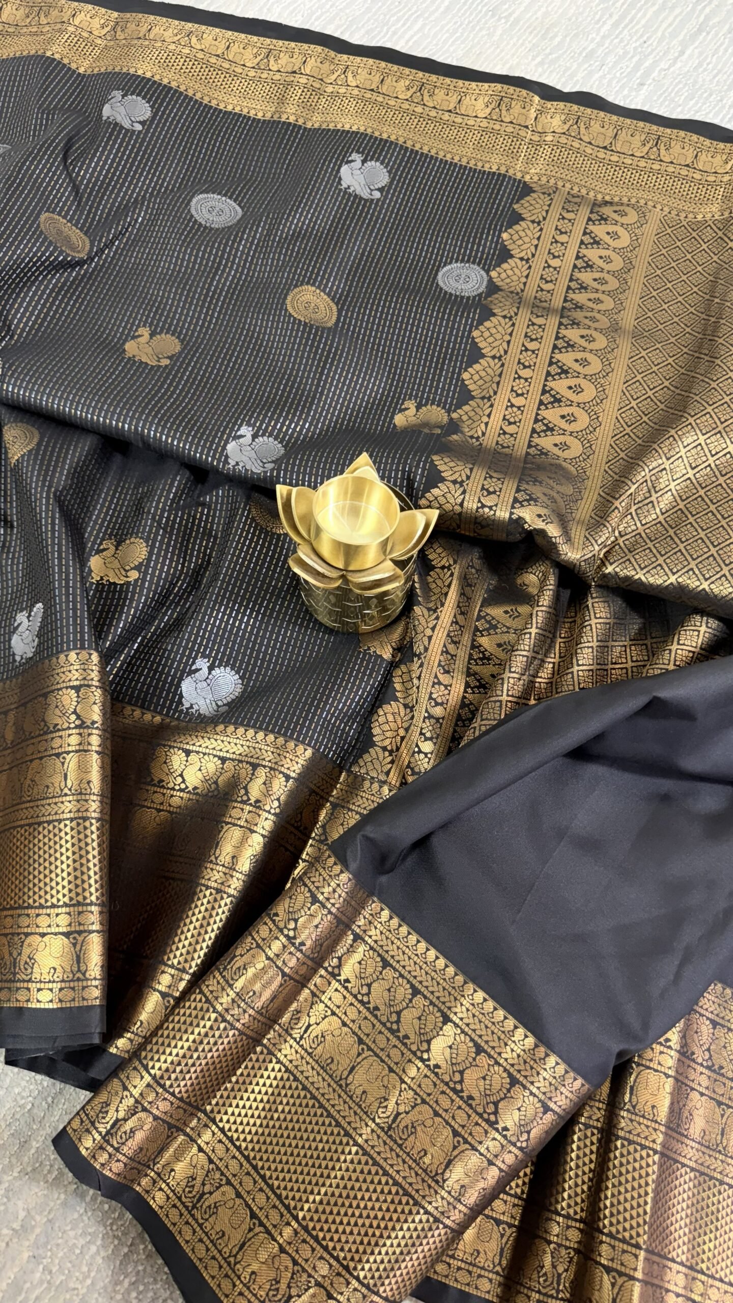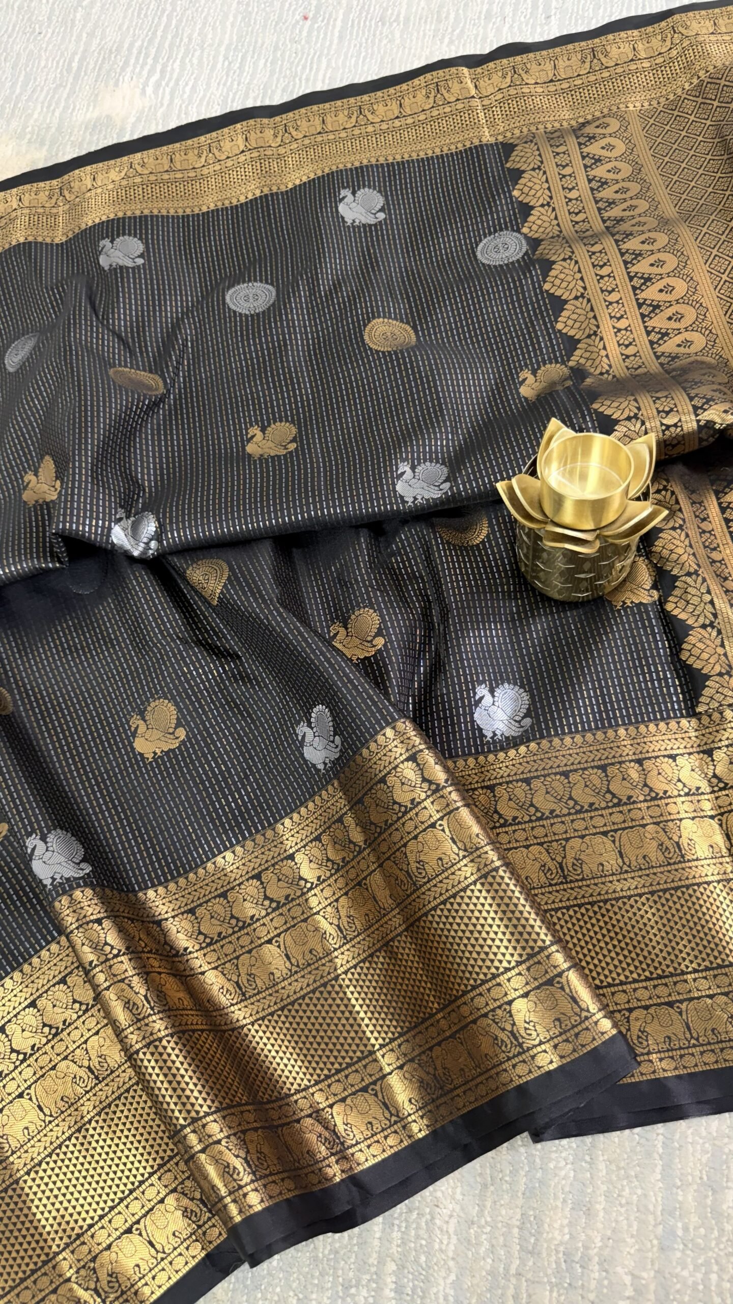 - Border: Traditional Kanchi Zari Border with Elephant Motifs