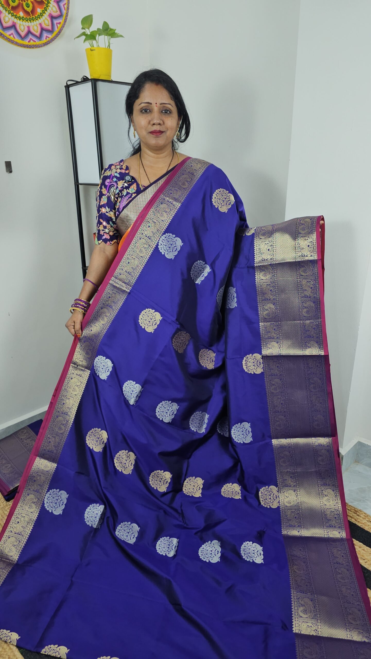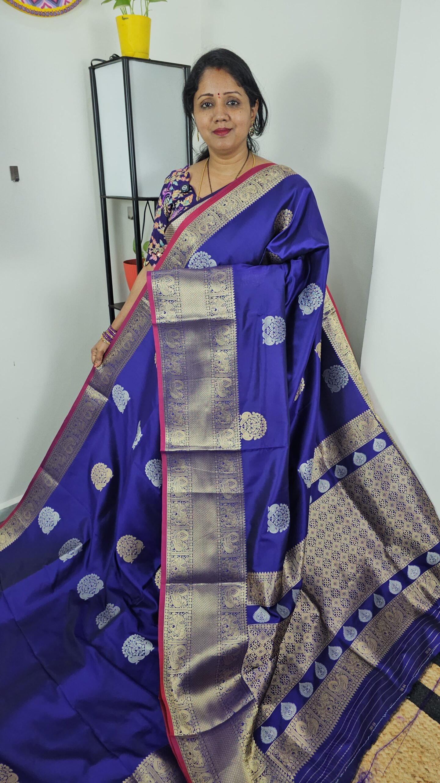 - Blouse Piece: 80 – 90 cm, richly woven with zari butties