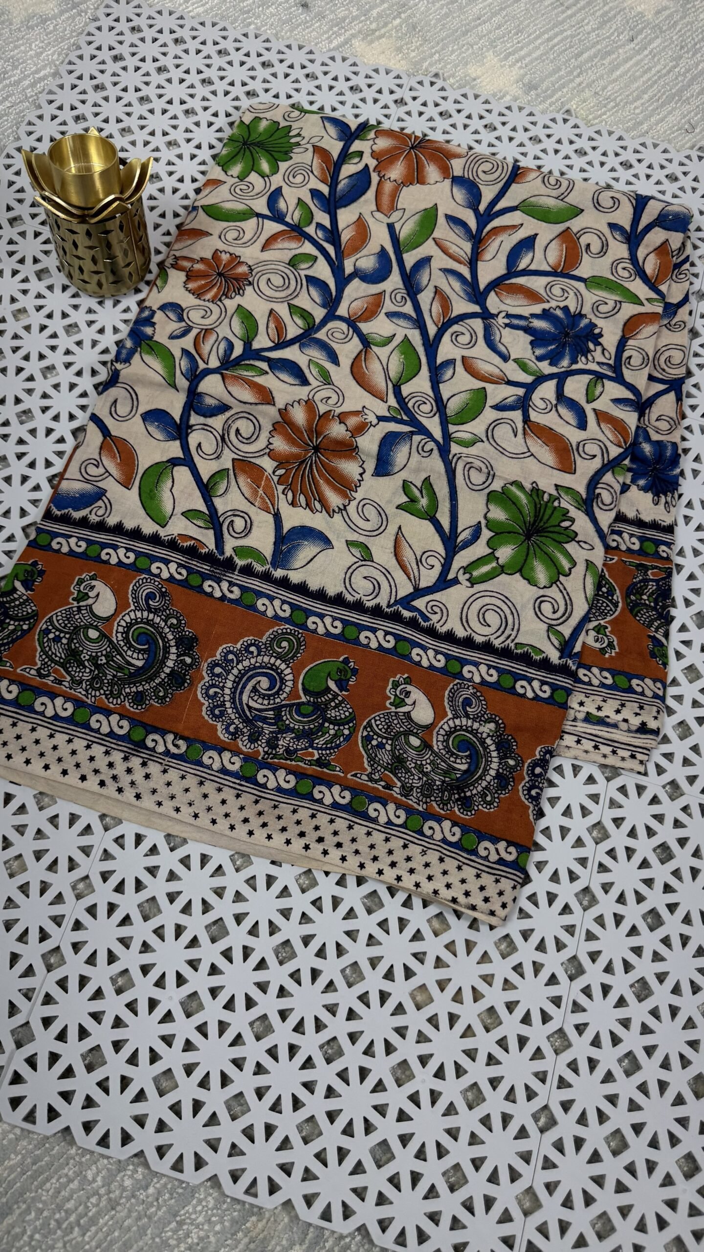 - Pattern: Hand Block Kalamkari Floral with Peacock Border