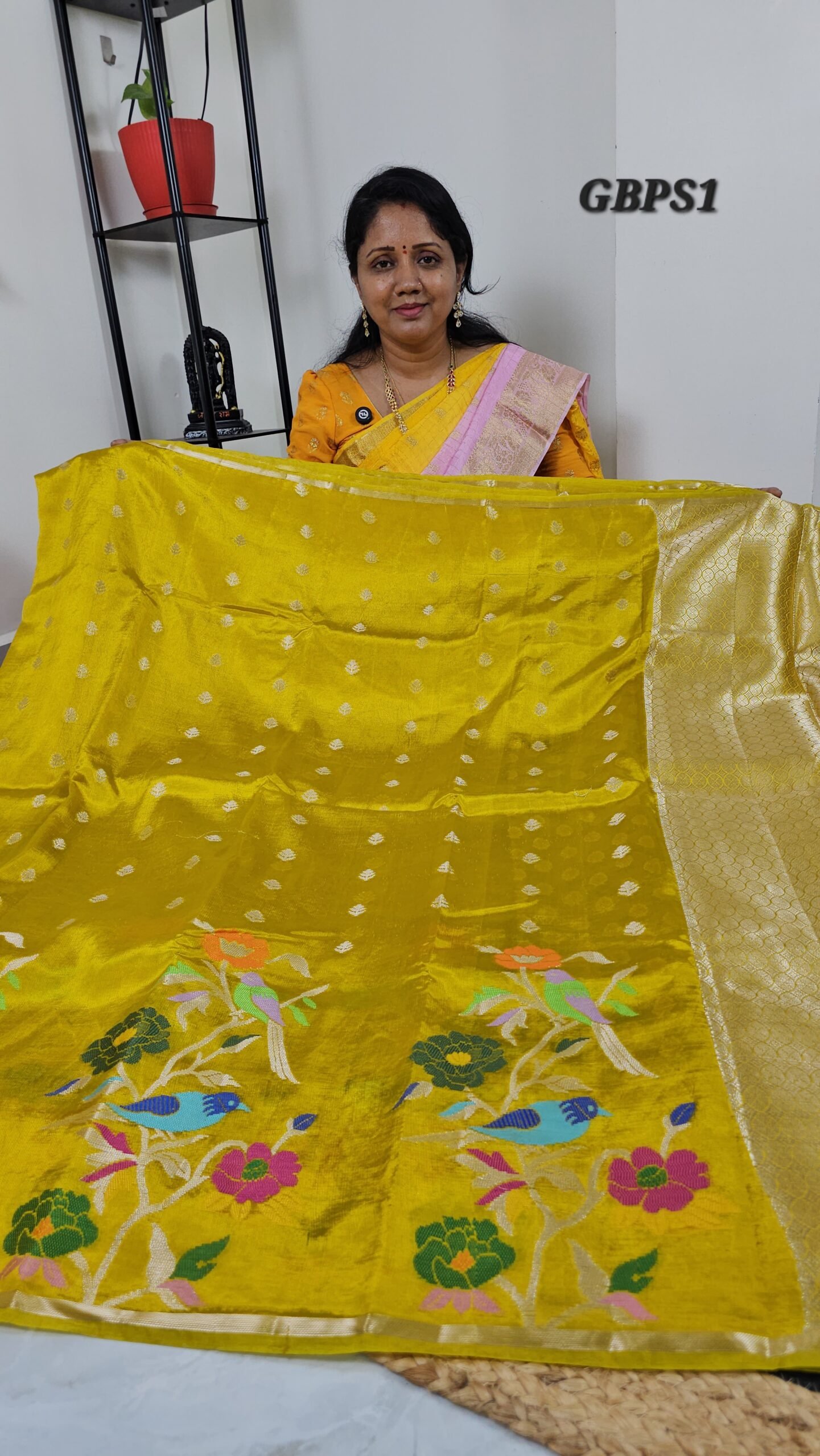 Lightweight Paper Silk Pattu Saree – Mustard Jamdani (Code: GBPS1)