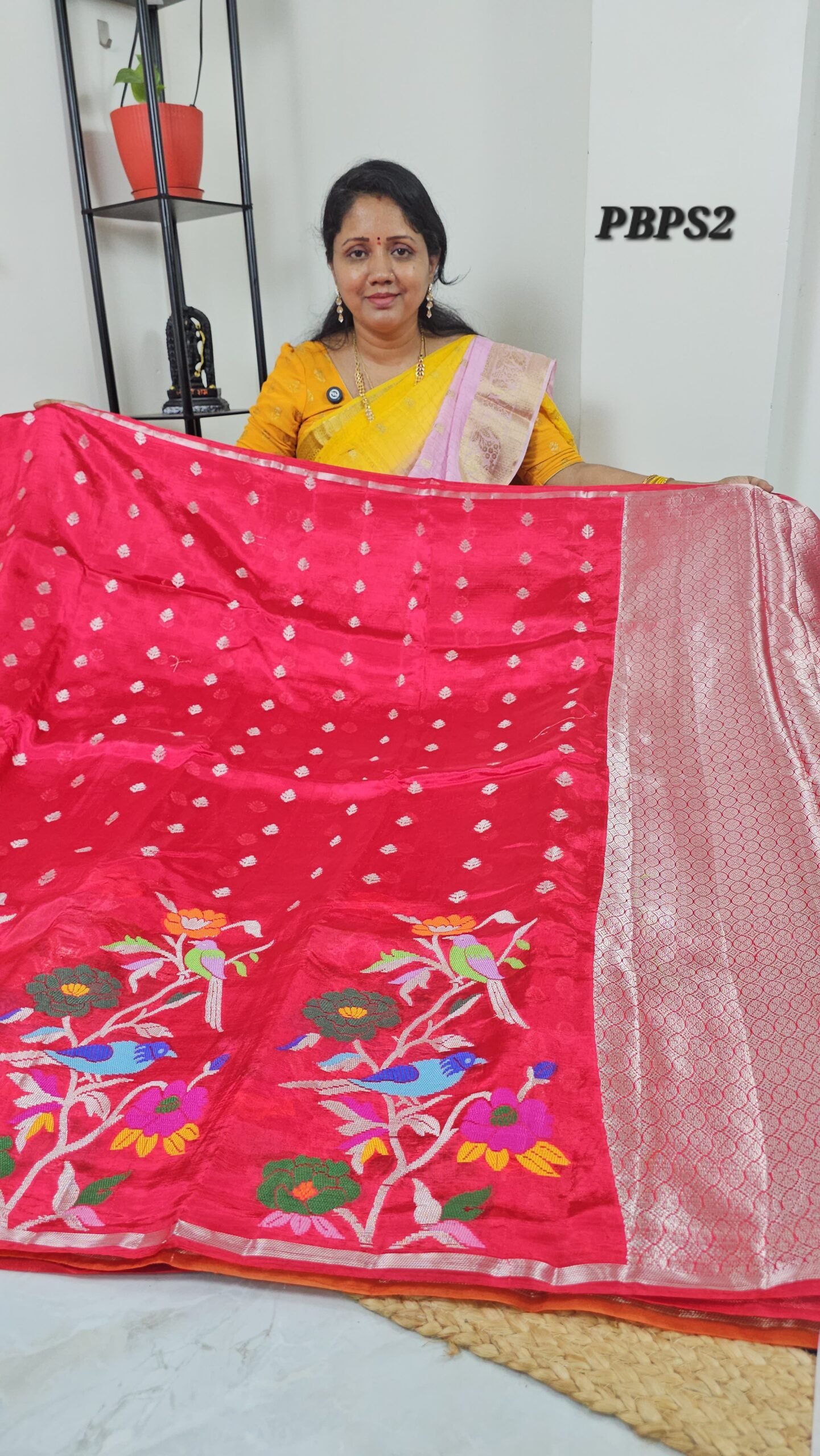 Paper silk pattu sarees are known for their unique soft texture, feather-light comfort, and graceful drape. Unlike heavy pattu sarees, they allow ease of movement while maintaining a grand festive look. The Jamdani weaving and colorful floral motifs make RBPS2 a standout piece in your collection.