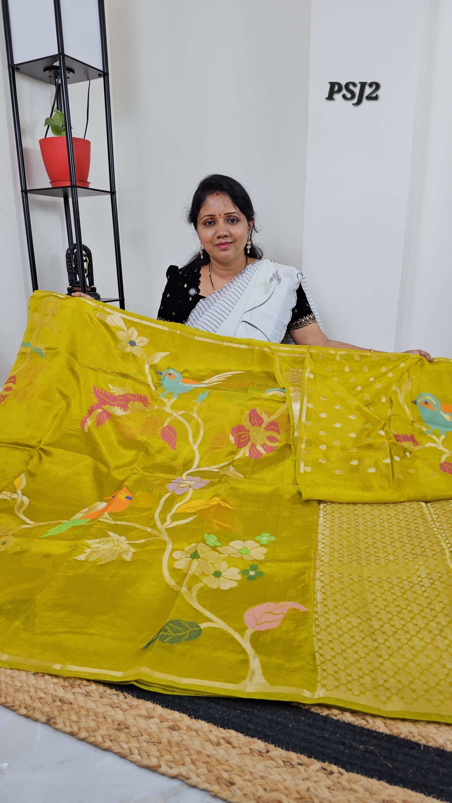 This lightweight Paper Silk Pattu Saree in elegant mustard yellow showcases Jamdani weaving, a subtle small kaddi border, and a rich pallu. Designed for weddings, poojas, and festive occasions, it brings traditional artistry with all-day comfort.