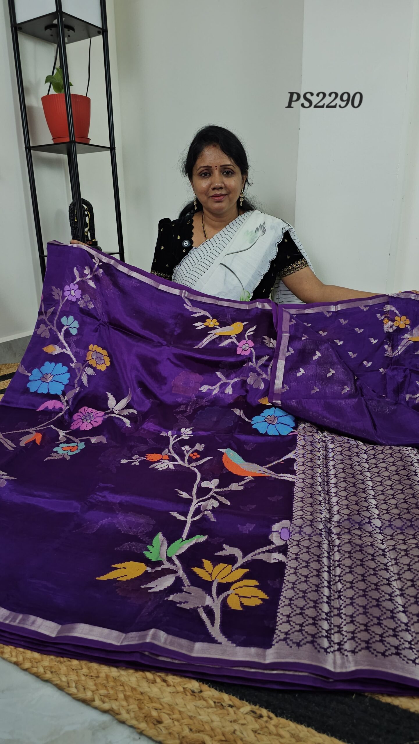 Paper Silk Pattu Saree Hyderabad – Jamdani Purple PS2290