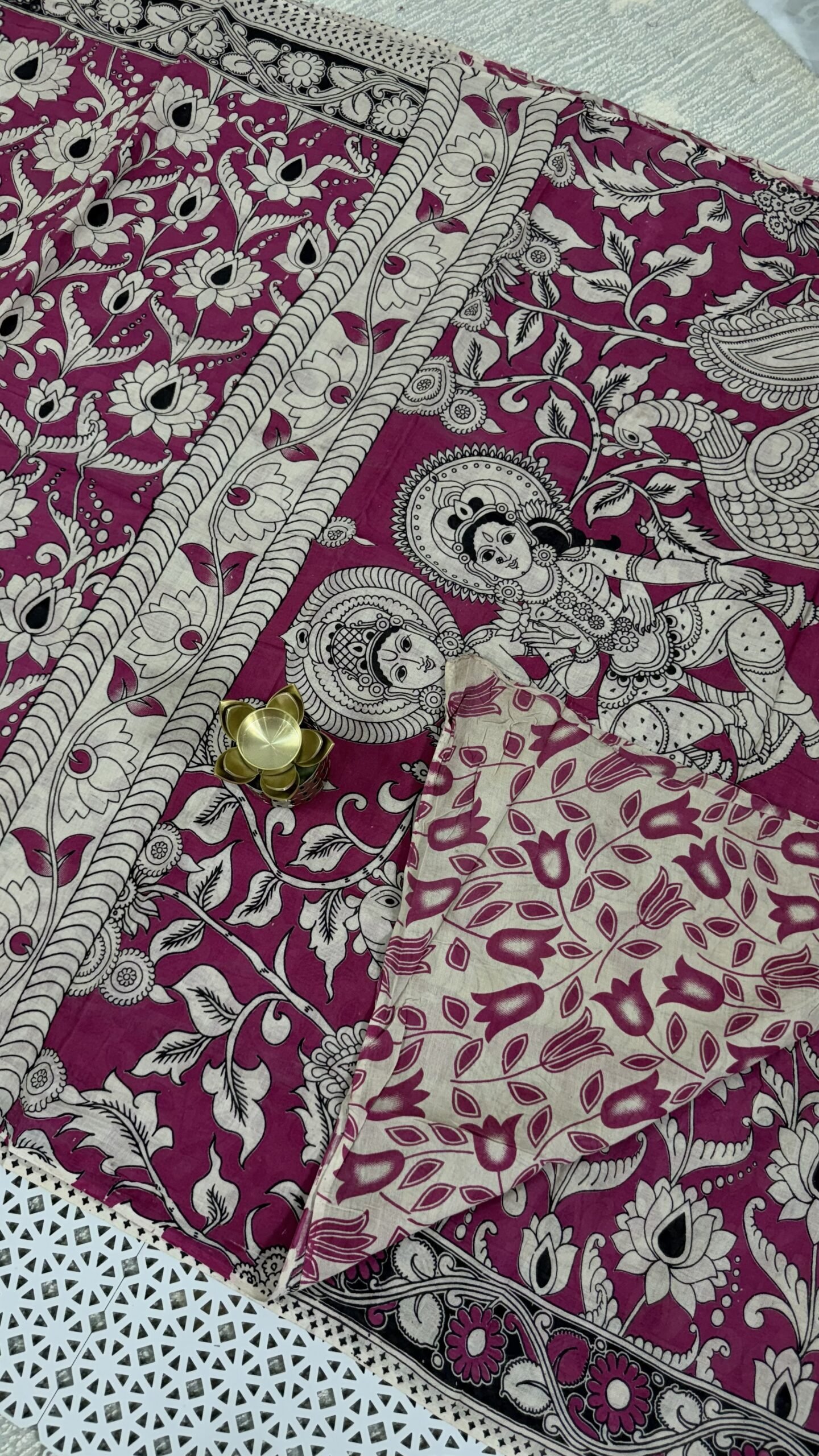 Pink Kalamkari Cotton Saree Floral Butta – Handloom KC37 | Hyderabad