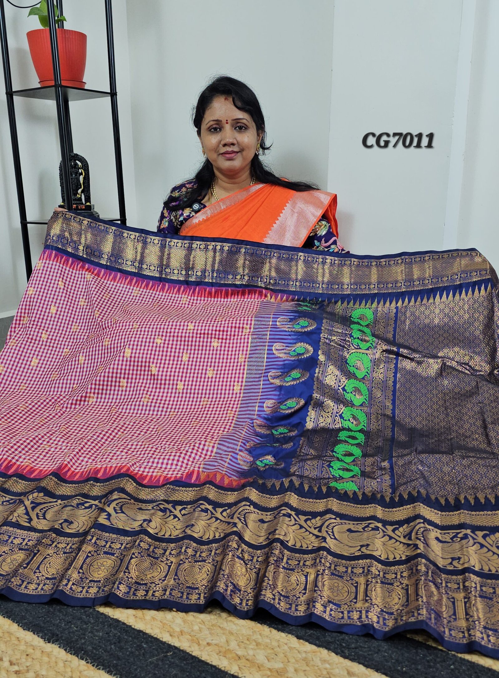 Premium Gadwal Multi Checks Saree Hyderabad CG7011