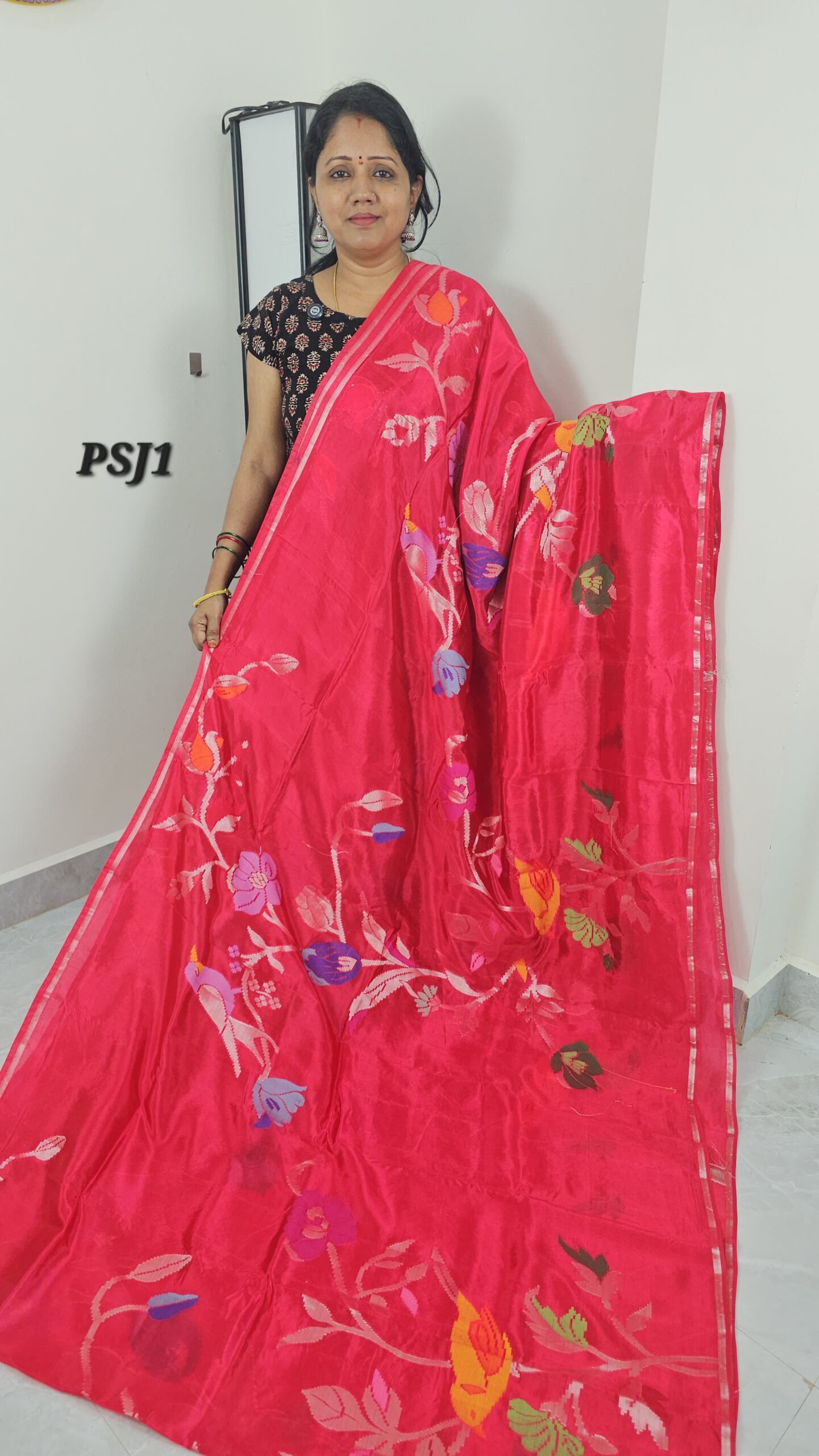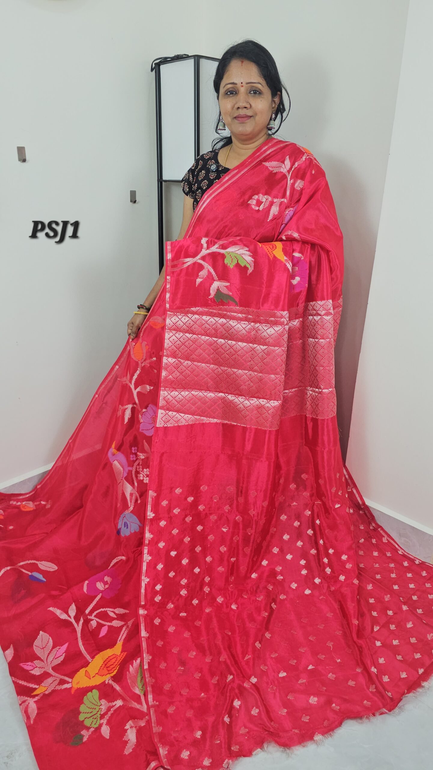 Red Paper Silk Jamdani Saree | Lightweight Pattu with Kaddi Border – PSJ14