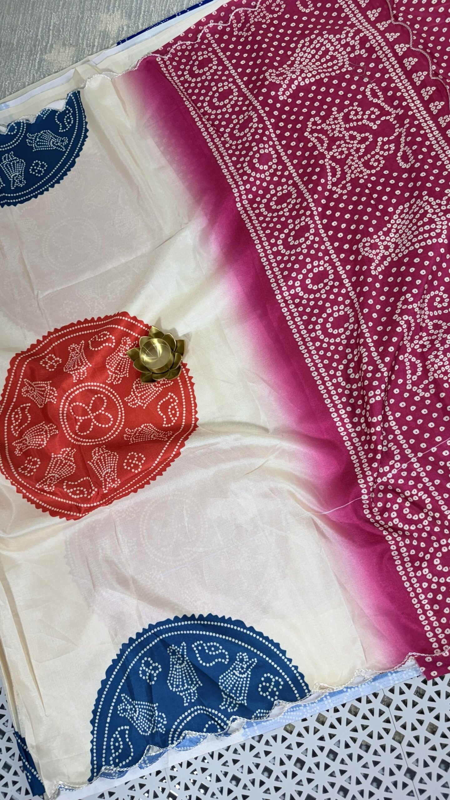 Tussar Silk Bandini Print Saree – Scallop Border | TSB01
