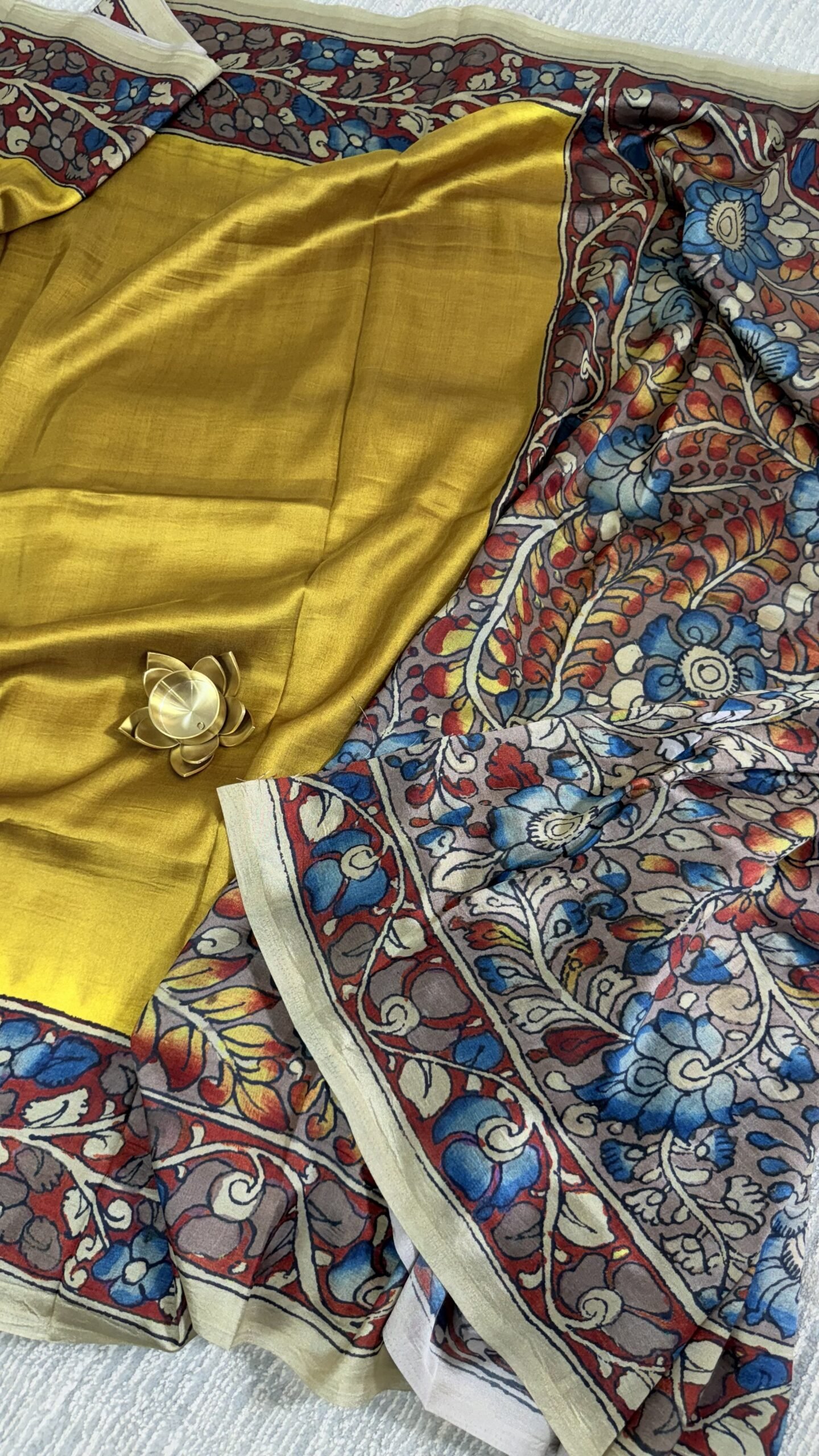 - Pallu: Rich Kalamkari printed pallu