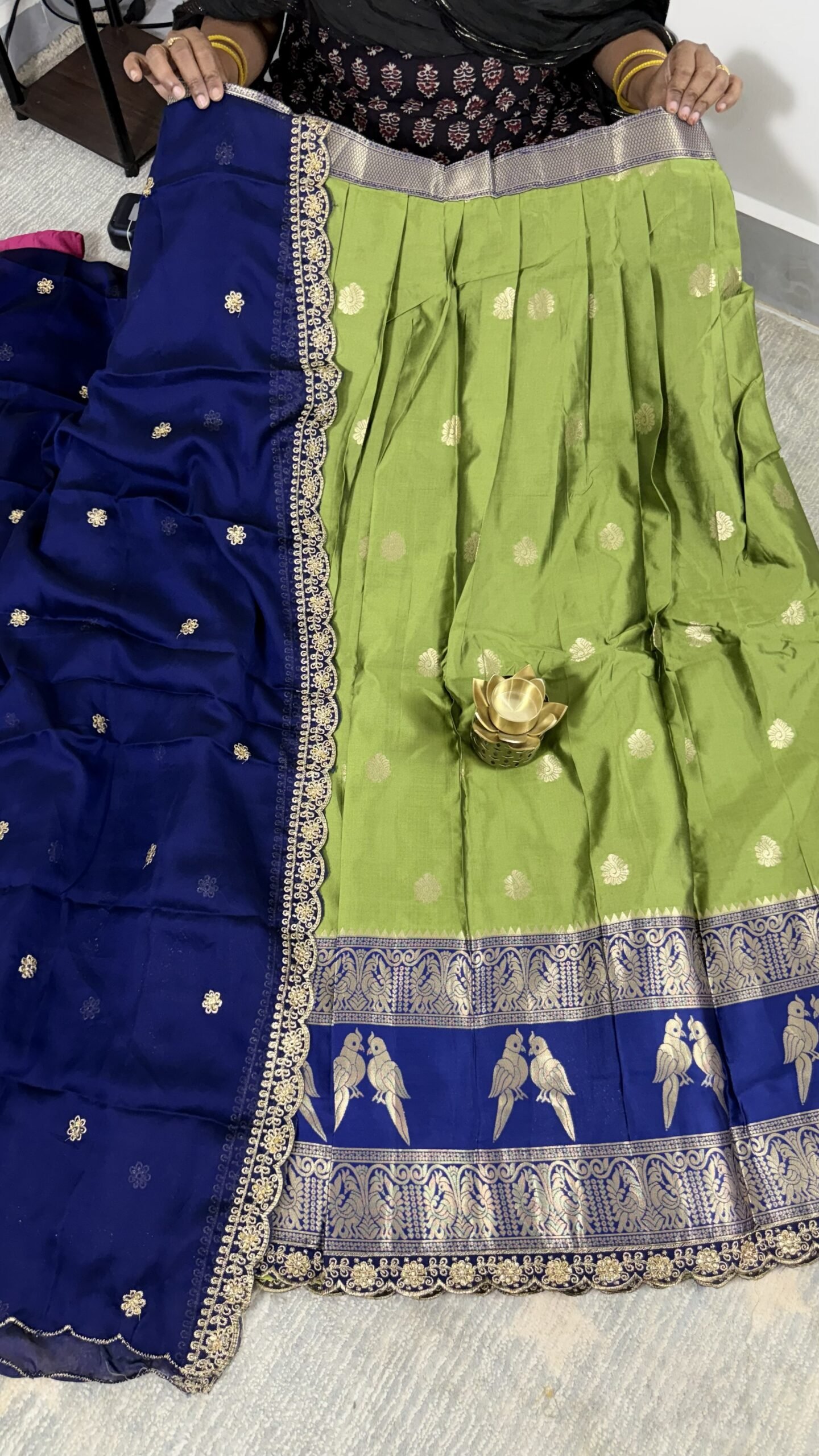 Exclusive Vintage Lehenga Set – Light Green & Navy Blue with Gadwal Kanchi Border | KGH2502