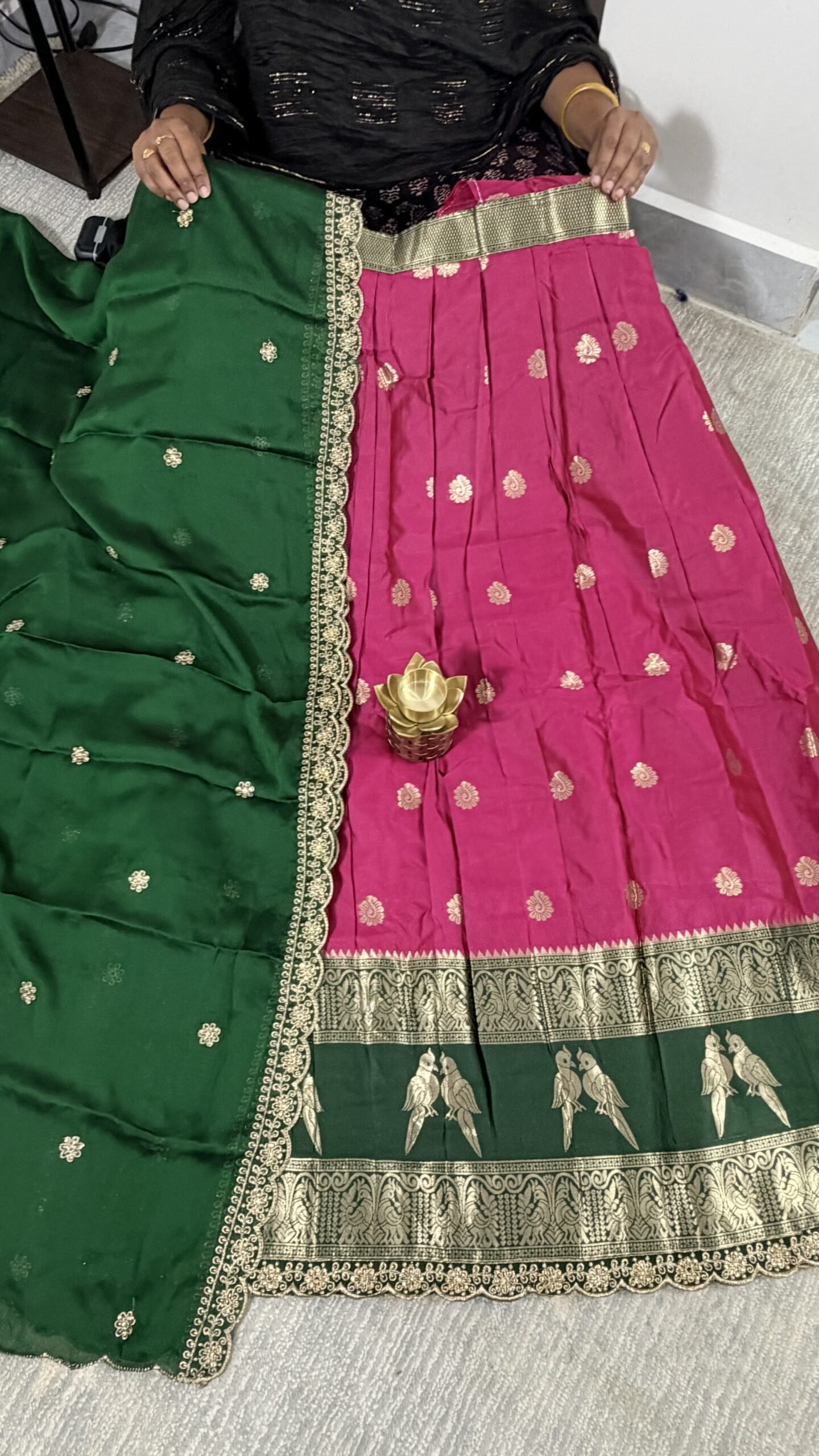 Exclusive Vintage Lehenga Set – Pink & Green with Gadwal Kanchi Border | KGH2501